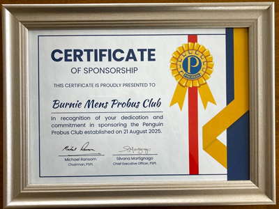 Burnie Probus was honoured to receive this commendation from Probus South Pacific in recognition of the club's assistance, and particularly that of member John Lamb, to the newly formed Penguin Probus Club.