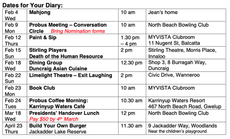 Diary Dates