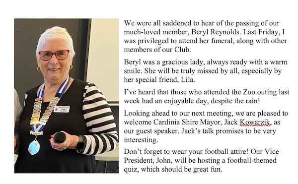 September Message from President Pamela chalmers: