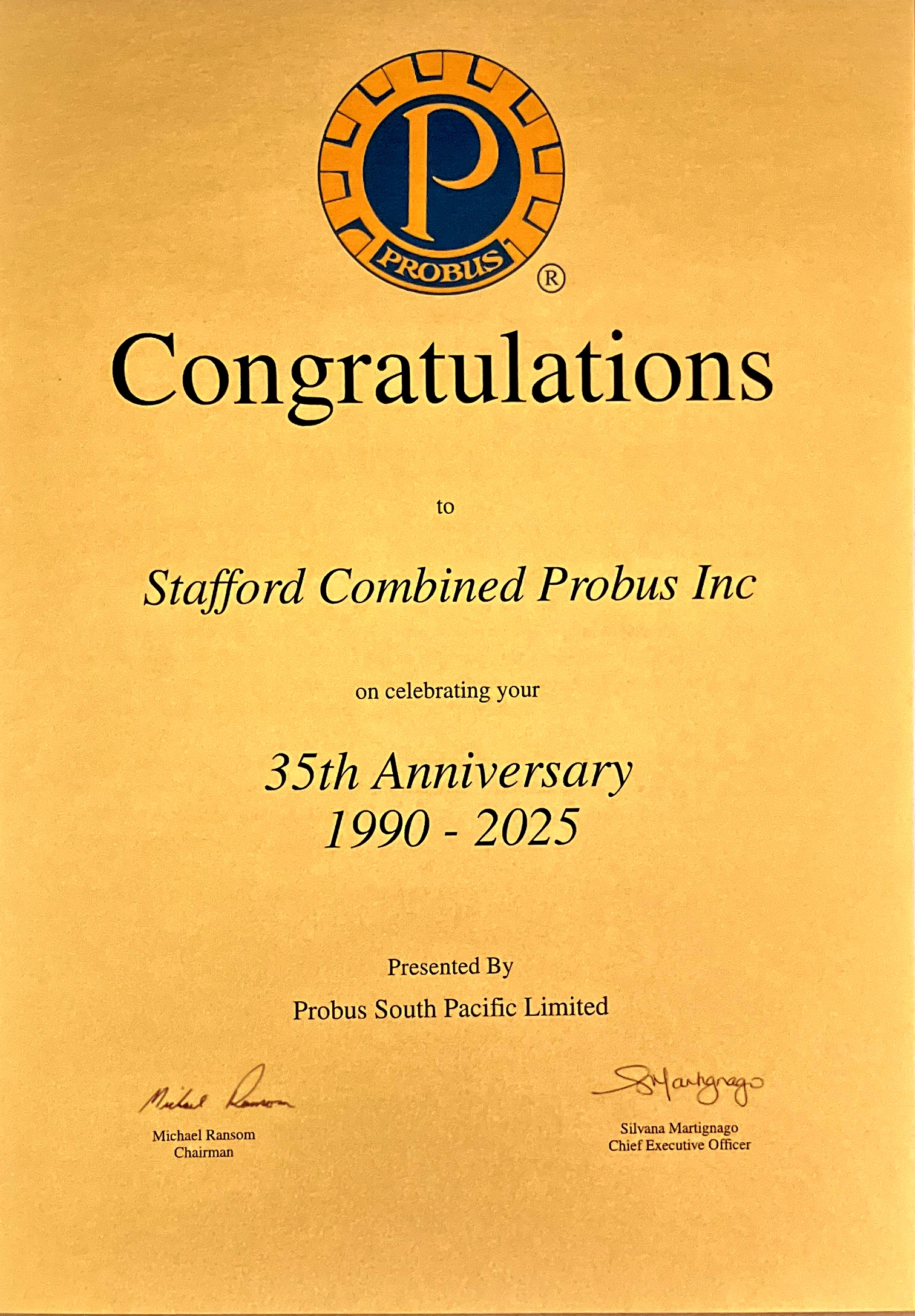 35 Years Birthday for Stafford Probus