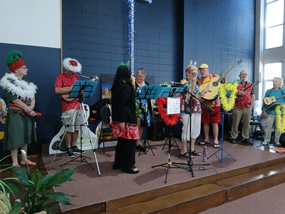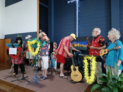 Here are some photos of the Mighty Ukes setting up.